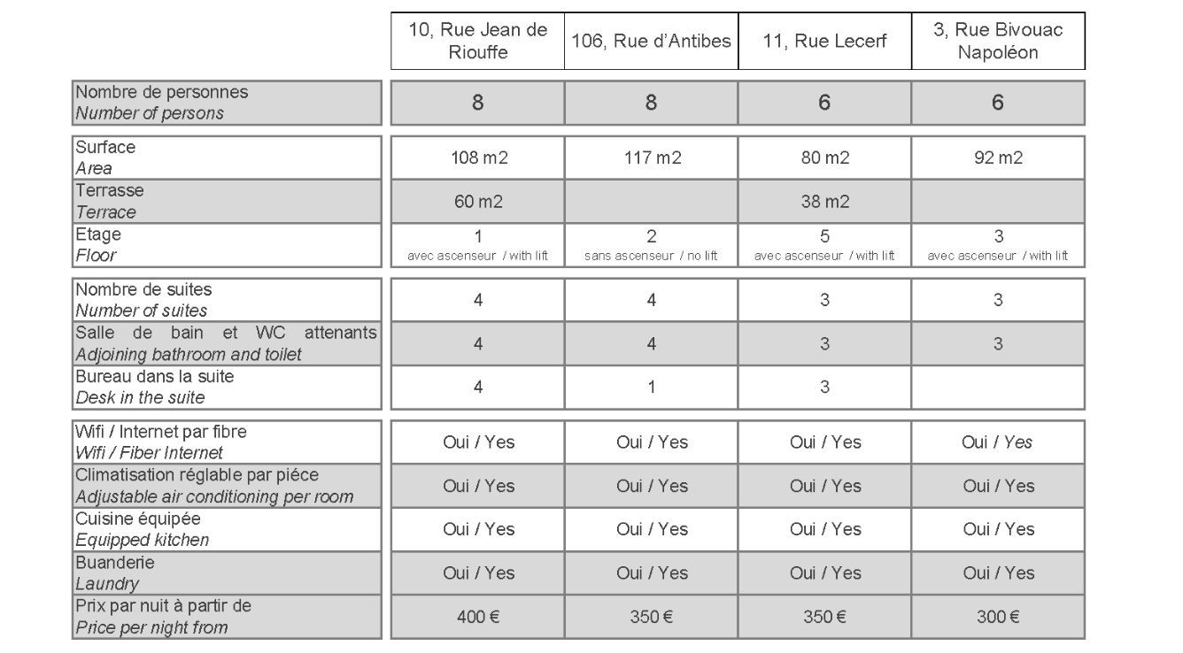 Que vous veniez à Cannes pour vos vacances ou pour participer aux évènements prestigieux comme le Festival du Film, le MIPIM, le Lions, le MIPCOM ou ILTM, nos appartements répondent parfaitement à vos besoins; les espaces sont aménagés avec des meubles de qualité et des éléments décoratifs soigneusement sélectionnés, offrant ainsi un cadre de vie luxueux, agréable et éventuellement propice au travail.